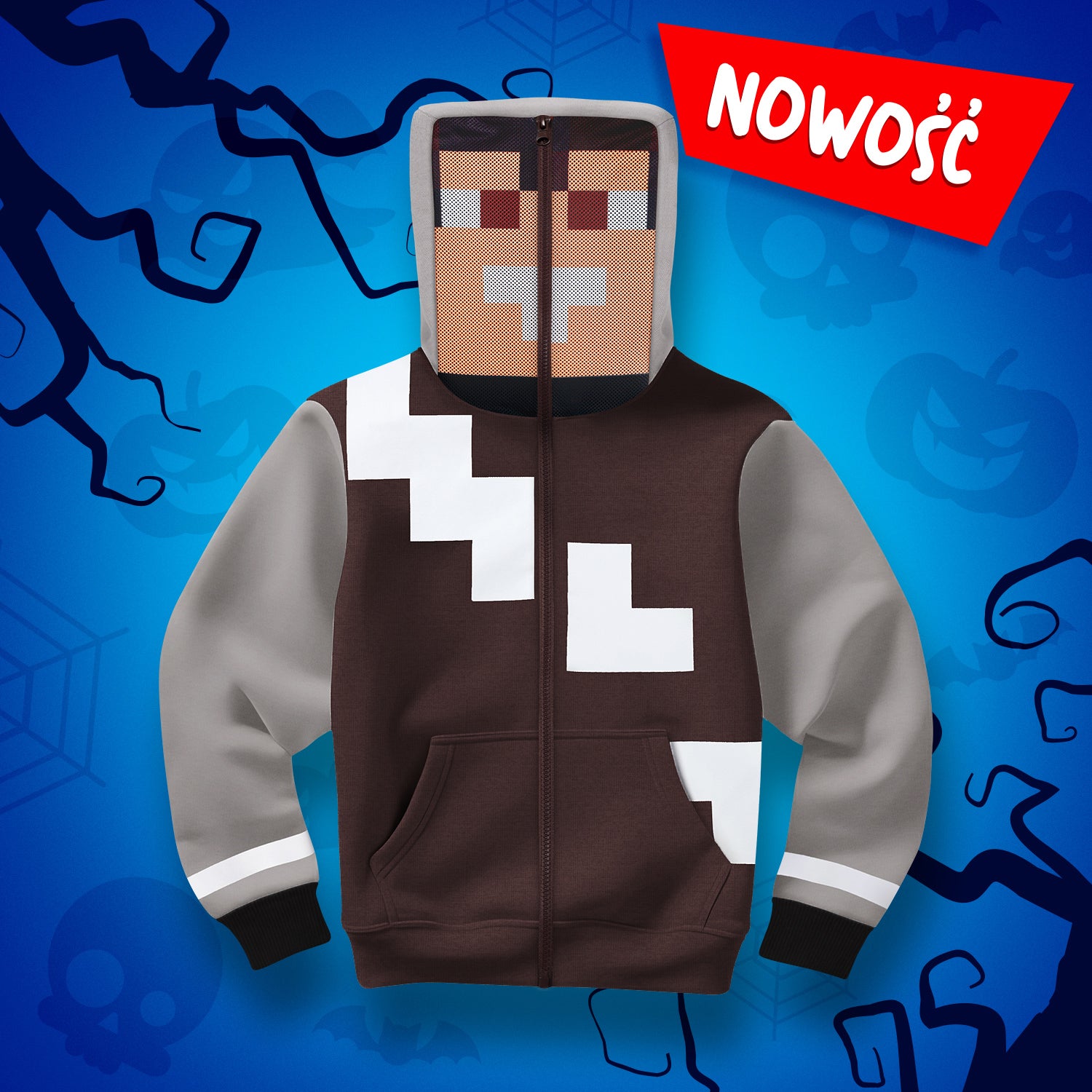 Bluza SKIN WOJANA *FULL ZIP* z maską na kapturze to idealny strój na Halloween – wygodna, ciepła i z efektem WOW po zasunięciu zamka! 🔥