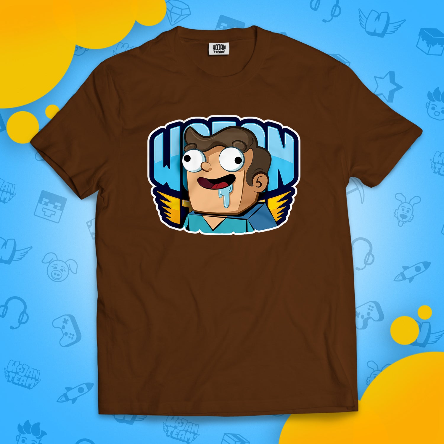 Brązowa koszulka z najśmieszniejszym mieszkańcem Wojanowic – Noobkiem! Do tego legendarne logo Wojan Team – humor gwarantowany!