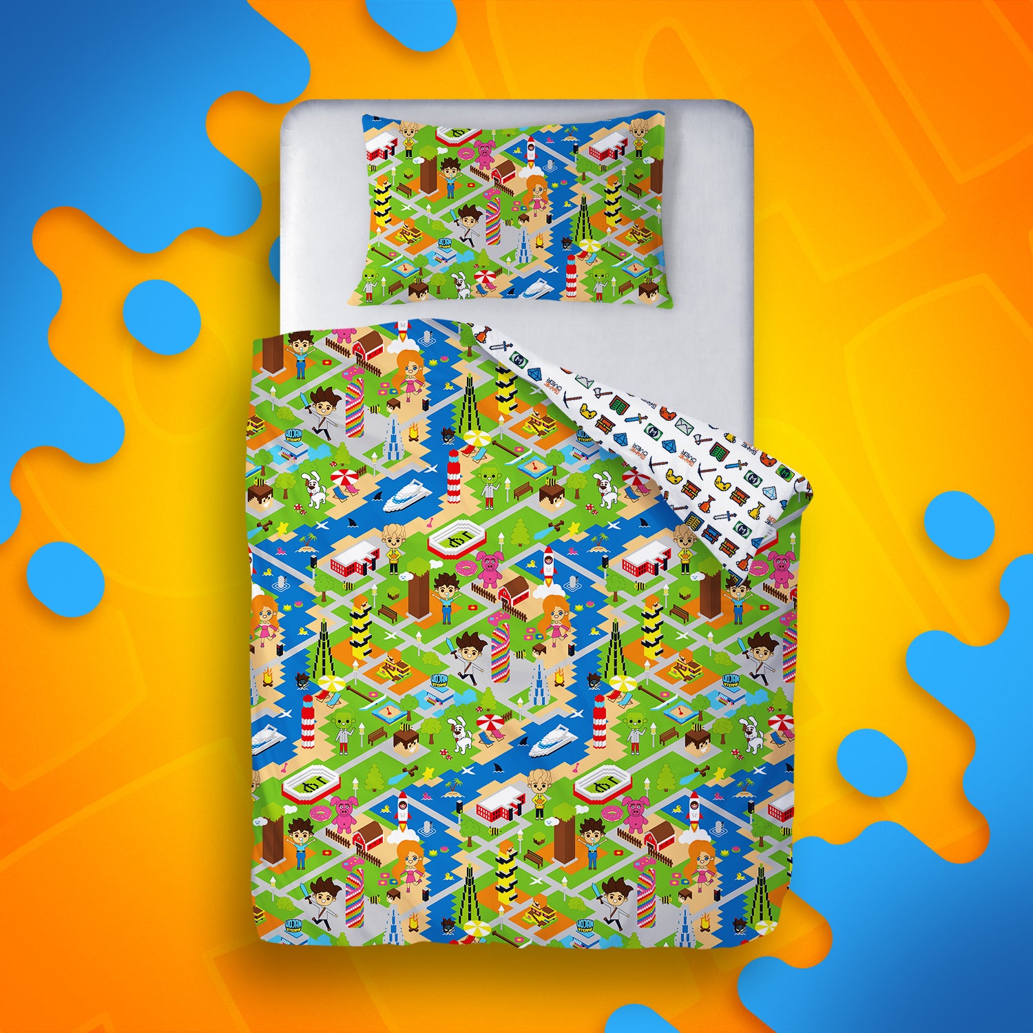 Dwustronna grafika pozwala na wybór wzoru – z jednej strony pełne życia Wojanowice z ulubionymi bohaterami, a z drugiej wyjątkowy motyw nawiązujący do tej magicznej krainy. Pościel dodaje każdemu wnętrzu unikalnego charakteru!
