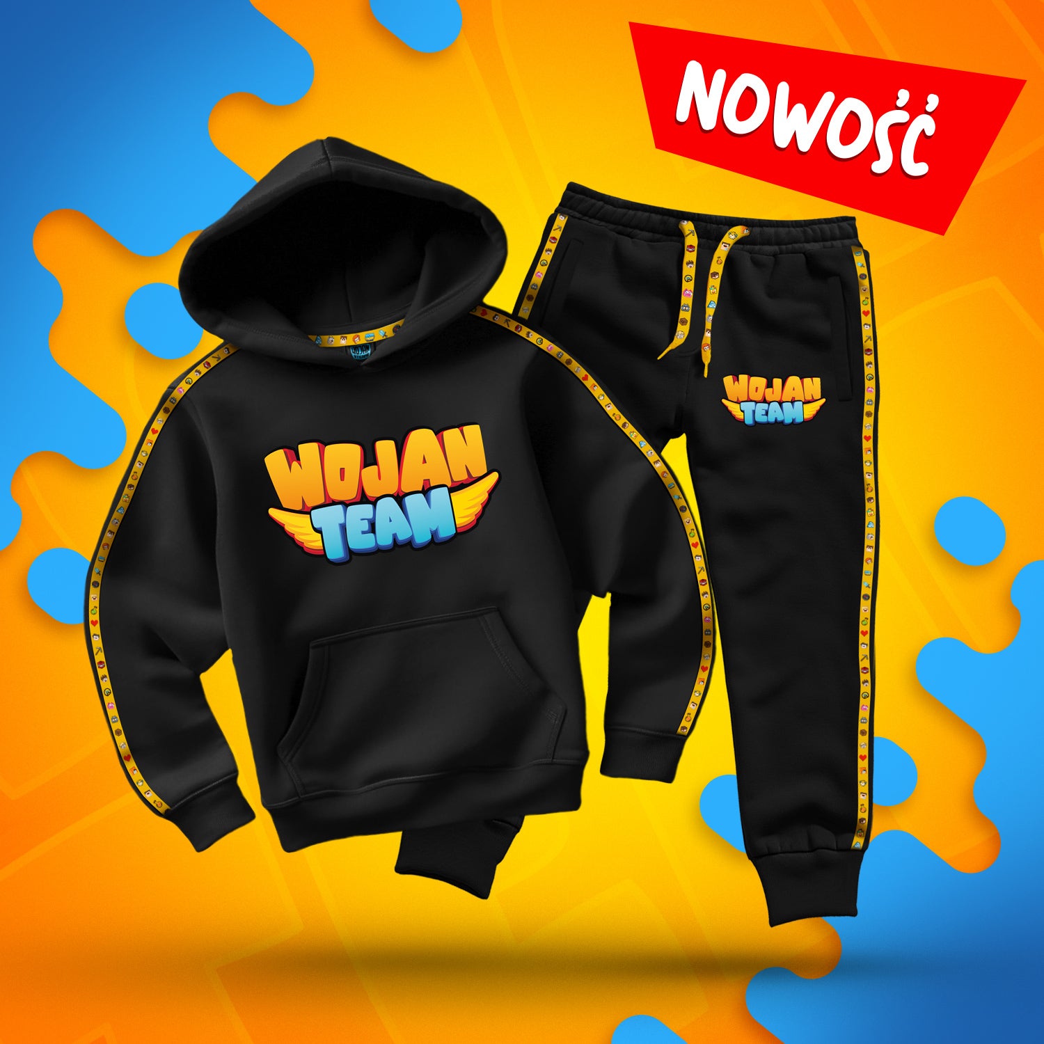 Zestaw bluzy i spodni Wojan Team to połączenie wygody i stylu. Gruby, miękki materiał zapewnia ciepło, a efektowne paski fullprint i nadruki nadają całości wyjątkowego charakteru. Idealny na co dzień – do szkoły, na spacer czy trening. Pokaż, że jesteś częścią Wojan Team!