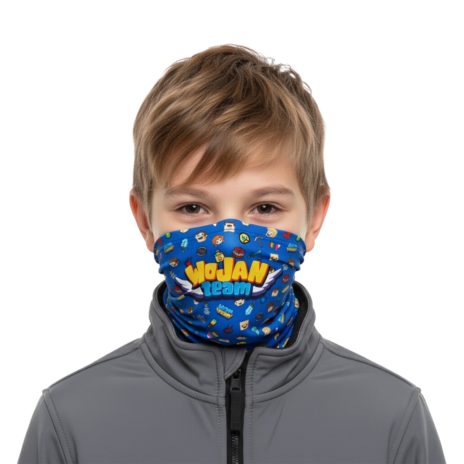 Zestaw pełen energii Wojan Team! Ciepła czapka i komin z kolorowym nadrukiem to połączenie stylu i komfortu. Miękka, elastyczna bawełna zapewnia wygodę, a trwały druk gwarantuje intensywne kolory przez długi czas.